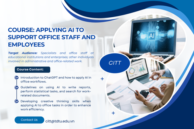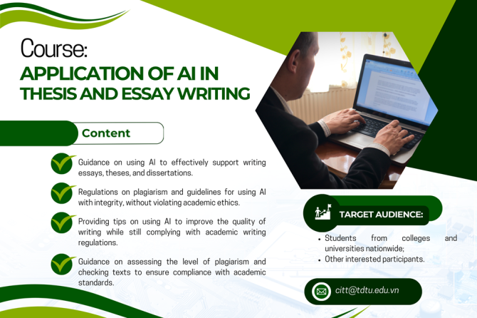 Courses Courses | 04/09/25 Course: "Applying Canva and AI to Develop Active Learning Methods" Courses | 01/09/25 Course: Applying AI to Support Office Staff and Employees Courses | 01/09/25 Course: Application of AI in Thesis and Essay Writing Read more