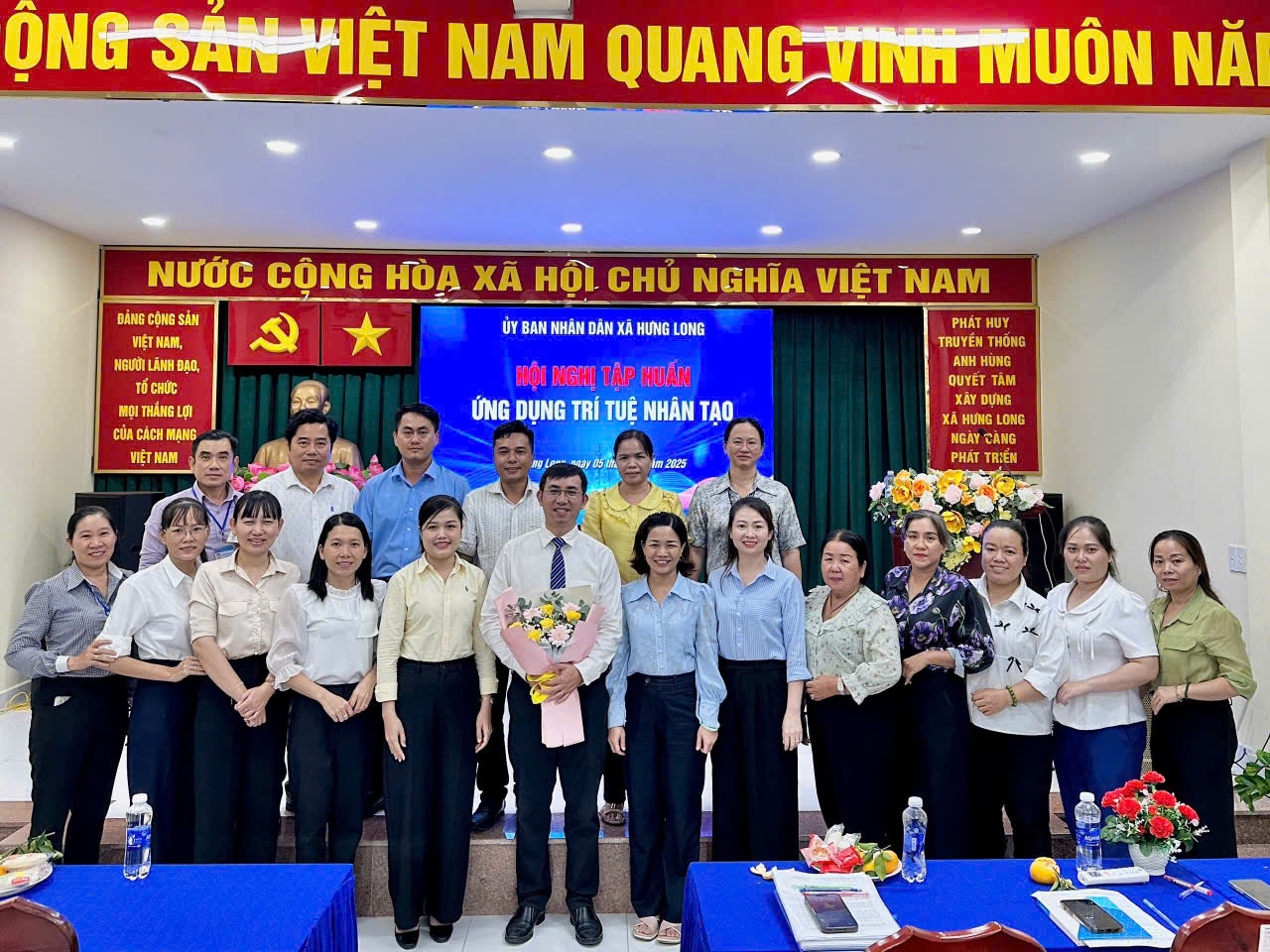 On the afternoon of November 5, 2025, at the People’s Committee of Hung Long Commune, the Center for Innovation and Technology Transfer (CITT) coordinated with the Hung Long Commune People’s Committee to organize a training session on the application of Artificial Intelligence (AI) technologies. The program aimed to enhance work efficiency among local officials, public servants, and employees.