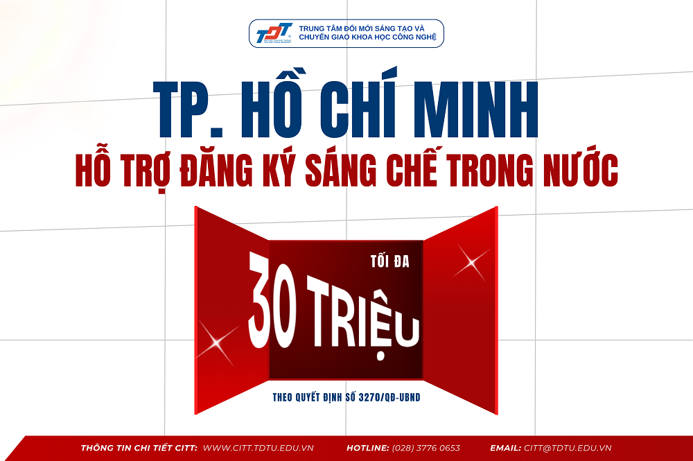 Hiện nay, Trung tâm Đổi mới sáng tạo và Chuyển giao Khoa học Công nghệ - TDTU đang tiếp nhận hồ sơ đăng ký sáng chế cho cá nhân, giảng viên, nhà nghiên cứu và doanh nghiệp.